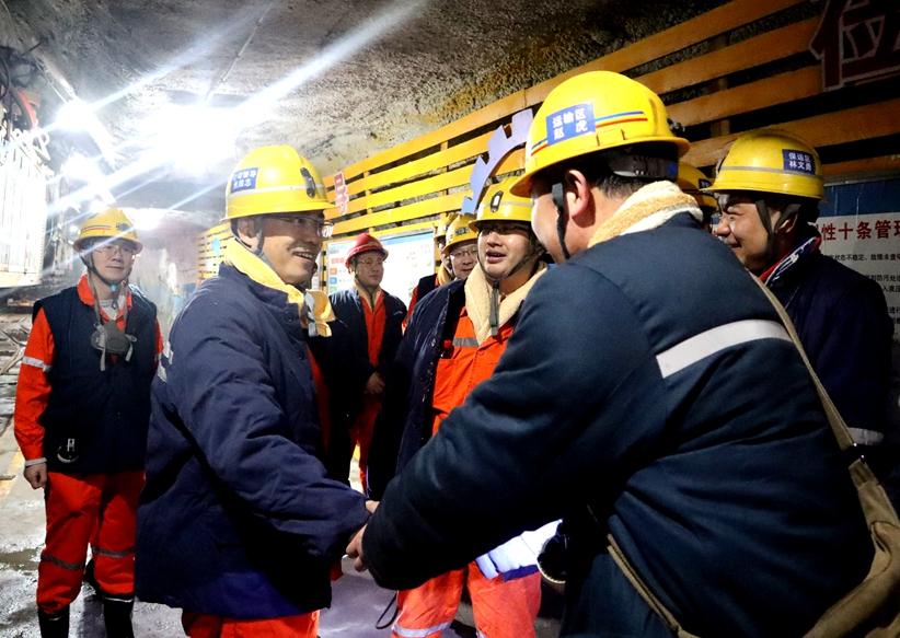 12月11日上午,公司董事、总经理焦殿志到钱营孜煤矿督导安全生产工作。钱营孜煤矿矿长孙爱国、党委书记孙安明、副总以上领导及相关单位负责人陪同检查。